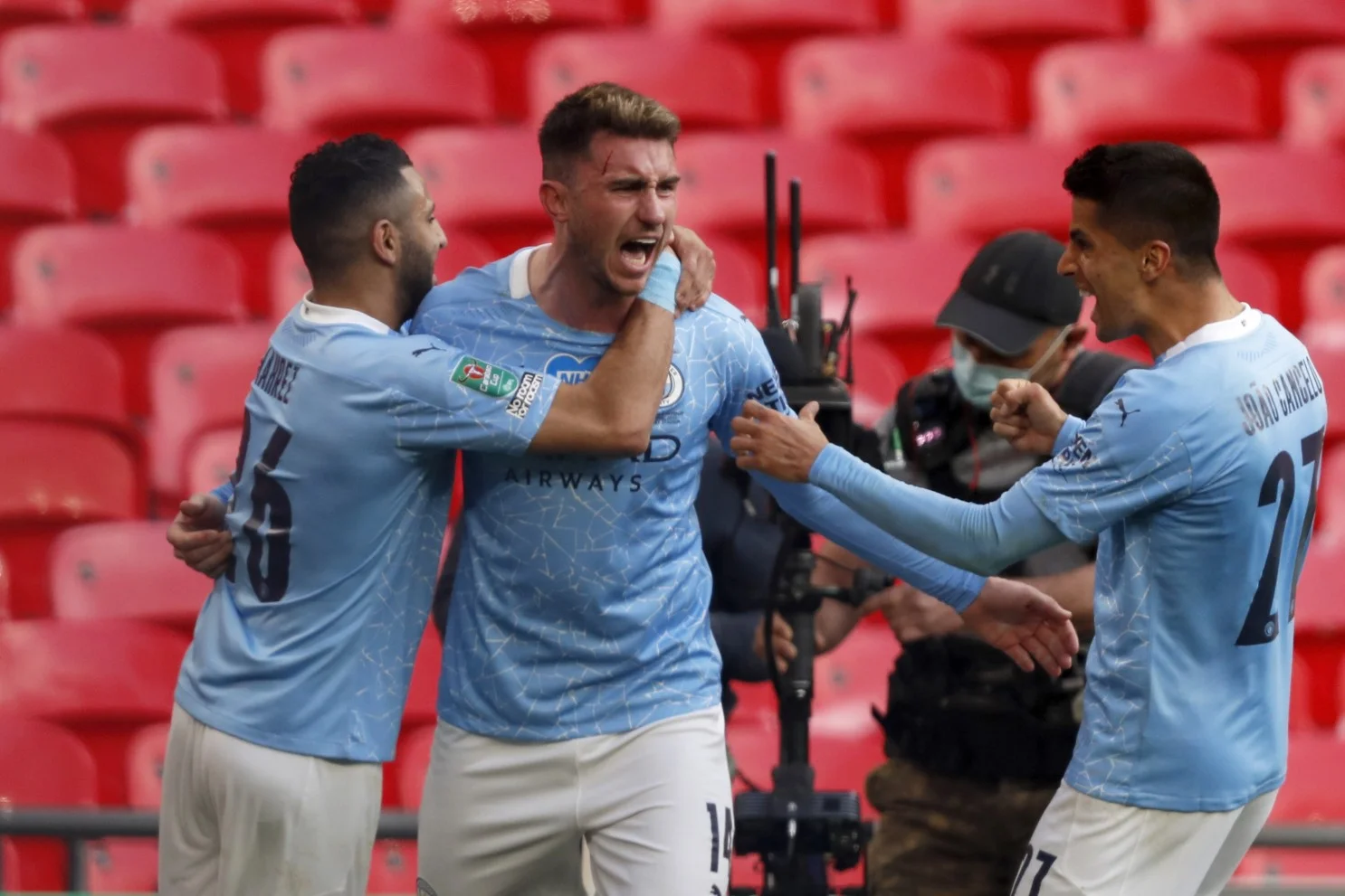 Ляпорт в объятиях Мареза и Канселу / AP Photo