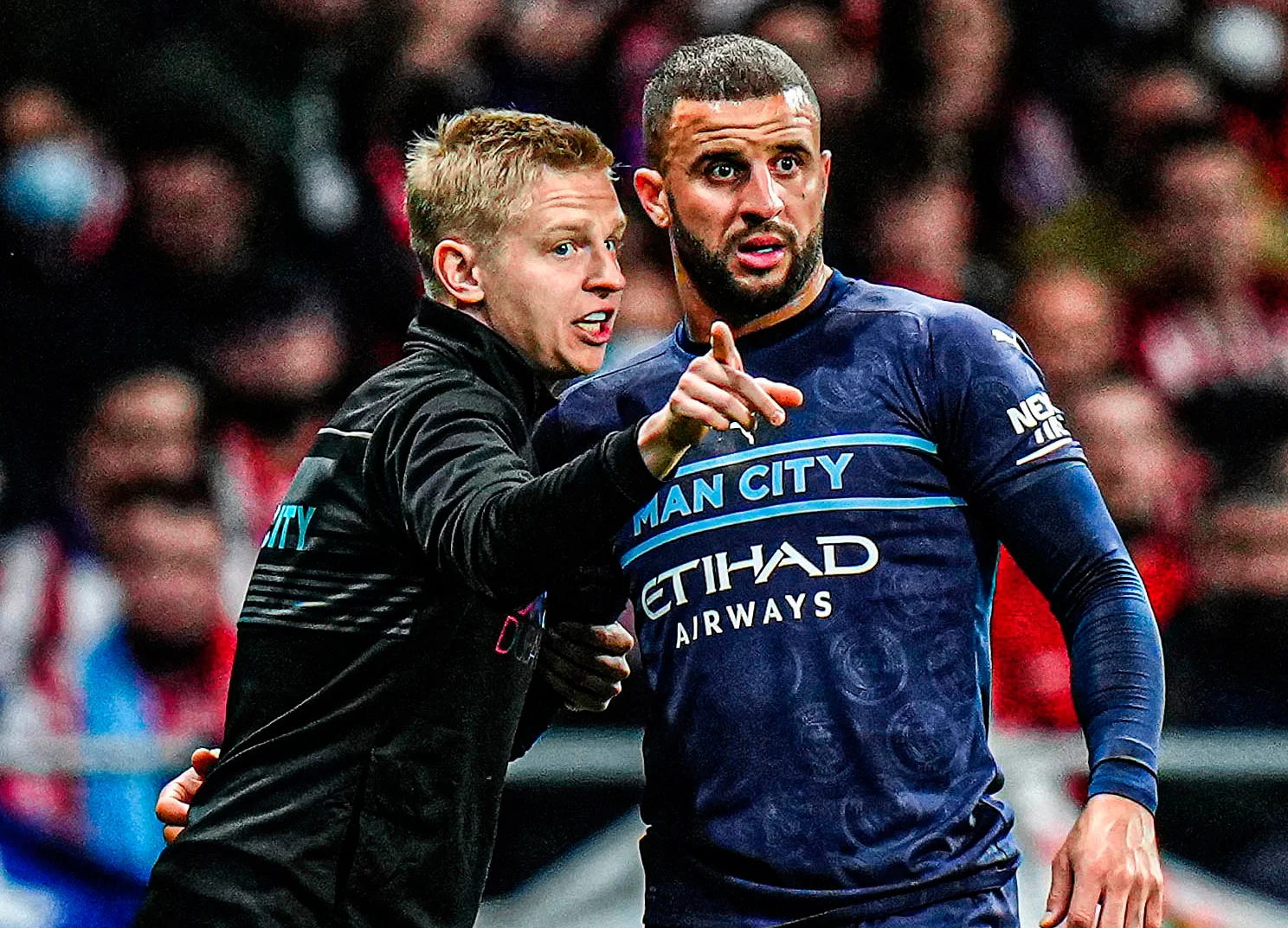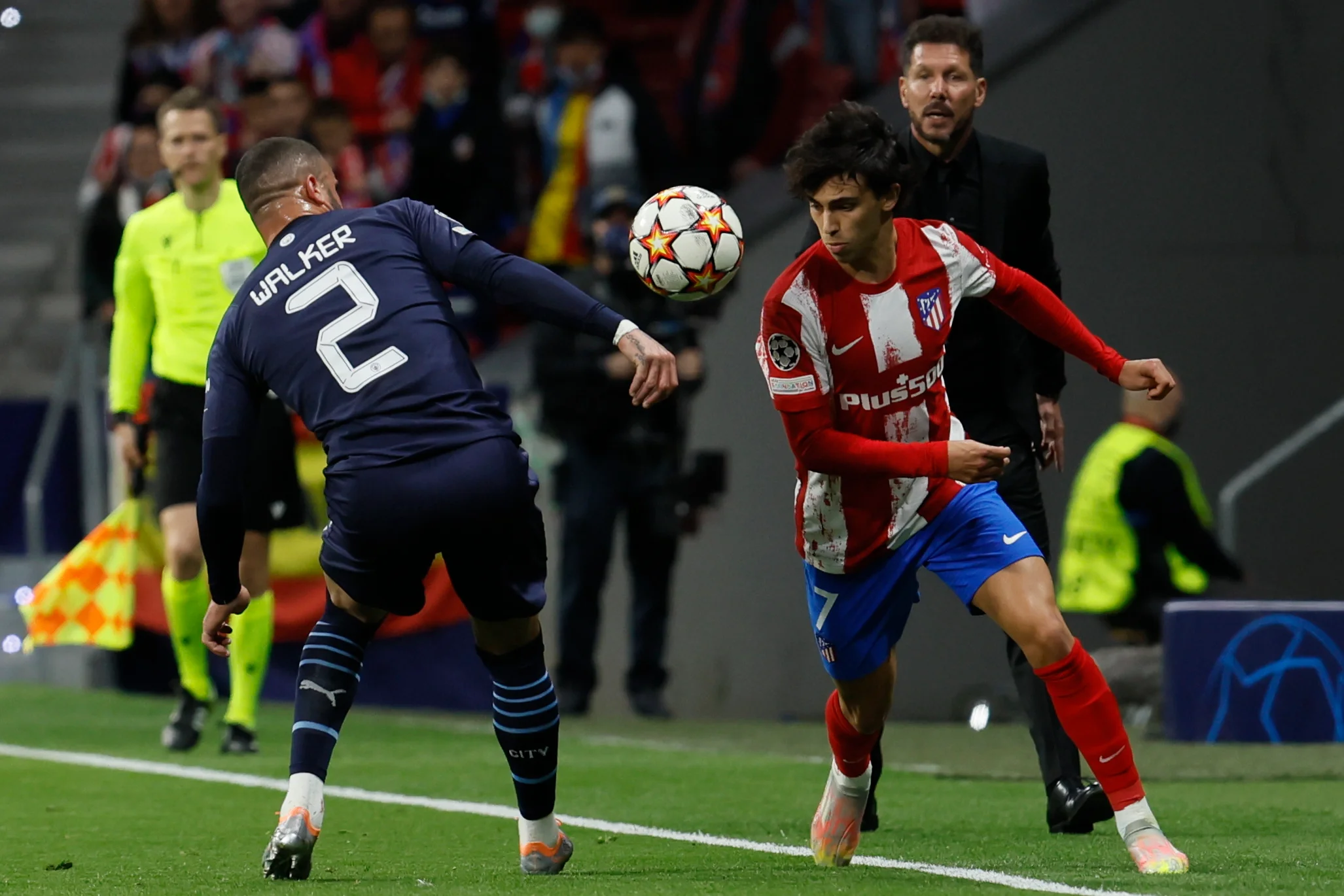 "Горожане" работали в схеме 4-3-3 с широкими позициями вингеров и Канселу, в то время как Уокер и два центрхава держались в узких позициях рядом с Родри. Очень часто Уокер выстраивал с защитниками тройку в первой фазе атаки, в результате чего Сити перестраивался в что-то похожее на 3-1-6 – схему со второго тайма поединка на Этихад. Во время последующих фаз атаки Уокер регулярно смещался в правый полуфланг. Ключевой идеей были перегрузка зон и растяжение обороны Атлетико.