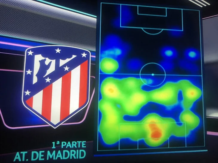 Это ставило Атлетико в неприятное положение, ведь теперь нужно было играть смелее, так или иначе открывая пространство. Тем не менее Диего Симеоне не выставил всех возможных нападающих и не пошел вперед с первых же секунд – его команда работала в схеме 5-4-1, как и в первой встрече. Разница заключалась в реализации этой схемы – в Манчестере мадридцы сосредоточились на зонной обороне, дома они решили работать с персональной опекой, агрессивным зонным прессингом со стороны тройки центрхавов.