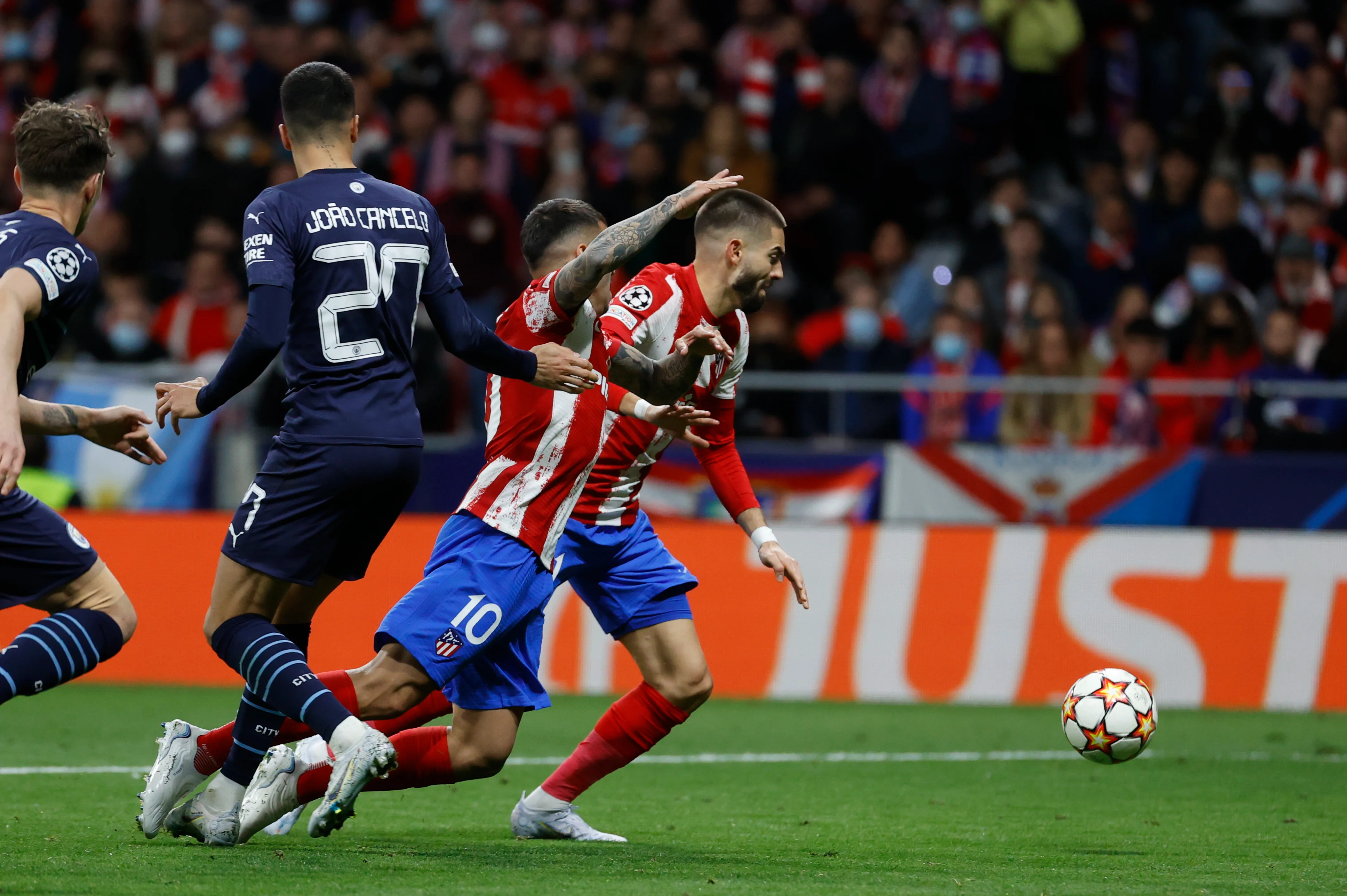 Атлетико в последние 10 минут основного времени ушел на штурм. Во многом, он был истеричен или имел интересный зародыш без финальной передачи – впрочем, дважды хозяева были близки к голу. Так, на 80-й минуте Де Пауль получил мяч перед правым углом штрафной и мощно пробил, но сфера прошла рядом с ближней штангой. На 87-й Корреа сбросил мяч под удар Куньи метров с шести, однако под выстрел в последний момент бросился Стоунз – мяч перелетел через него и Эдерсона, но в ворота не приземлился.