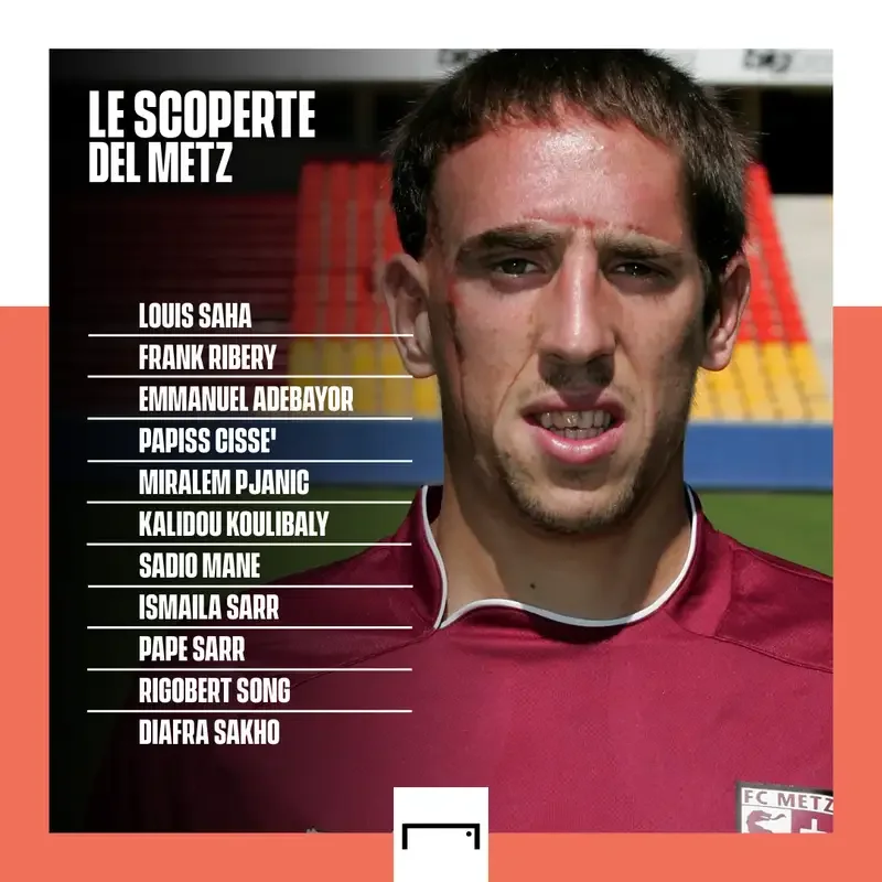 Метц также открыл миру Миралема Пьянича, Луи Саа, Эммануэля Адебайора, Робера Пиреса, Паписса Сиссе, Ригобера Сонга. Все эти футболисты начинали карьеру в бордовых футболках. А еще можно вспомнить Франка Рибери, прошедшего через Метц перед Марселем и Баварией.