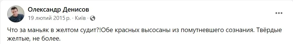 Непосредственные участники того поединка возмущались не меньше. "Он не шел на диалог и был неадекватным! Это подсказывало мне, что вести диалог нет смысла. И хотя я пытался вести с ним разговор спокойно, он почти истерил и показывал все время в сторону раздевалки. Очевидно, что он попал в запару", – говорил опытный Александр Шовковский.