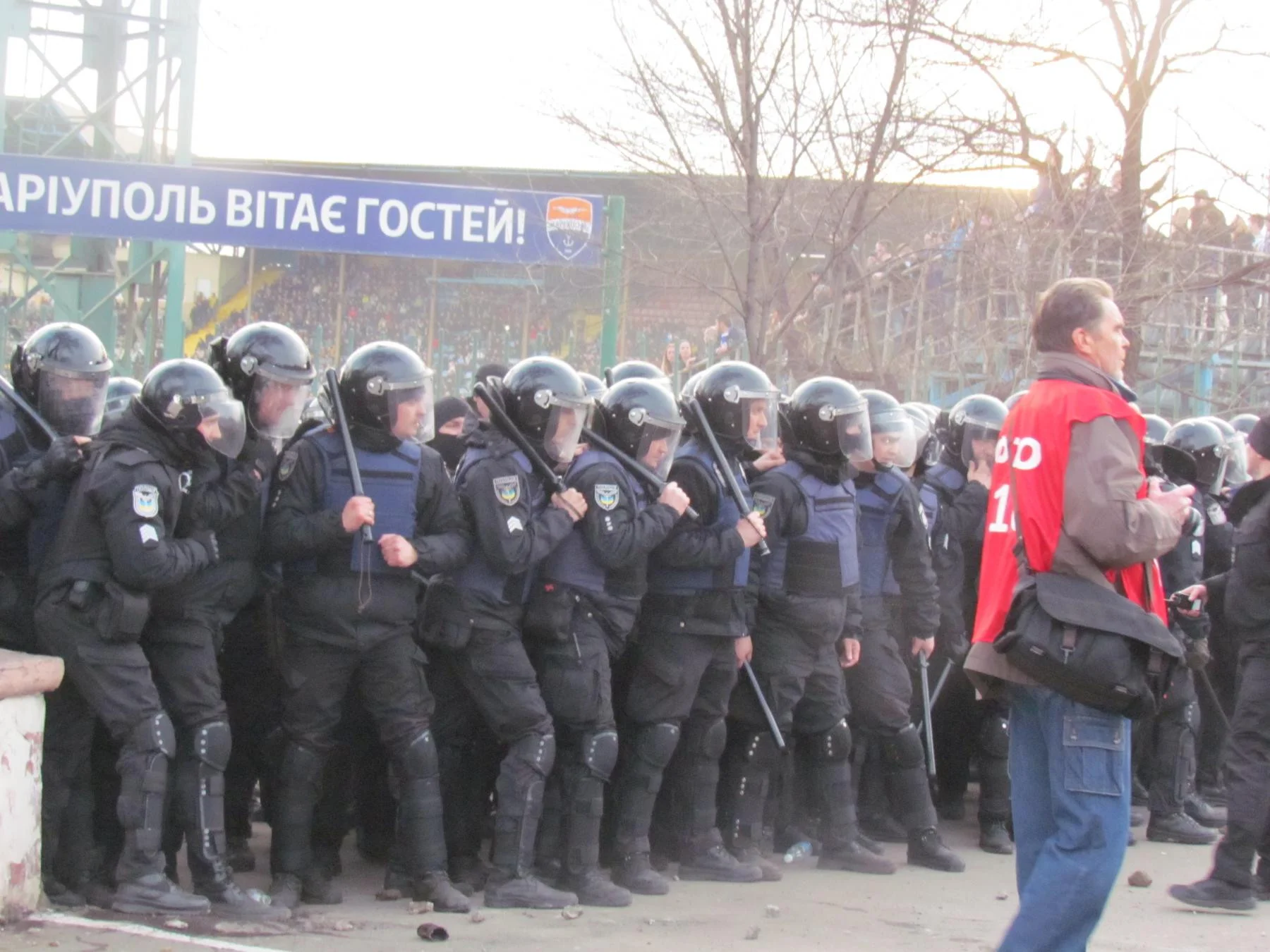 Фанаты Мариуполя и Динамо объединились против полицейских в воскресном матче чемпионата Украины. Произошли столкновения и драки.