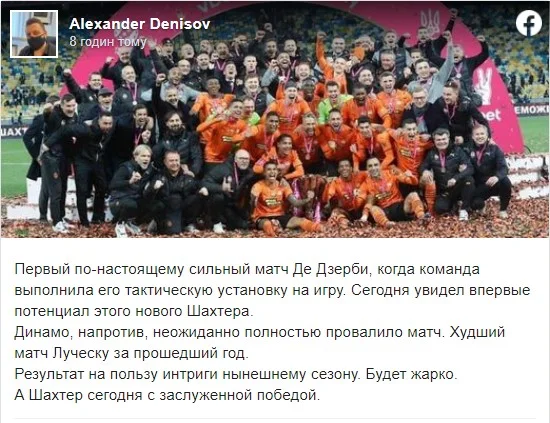 Директор телеканалов Футбол 1/2/3 Александр Денисов впервые разглядел потенциал нового Шахтера. Зато Динамо, по его мнению, провело худший матч года.