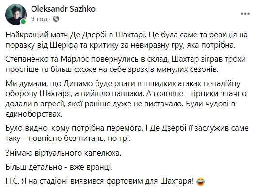 Обозреватель Tribuna.com Александр Сажко – о лучшем матче Де Дзерби в Шахтере.