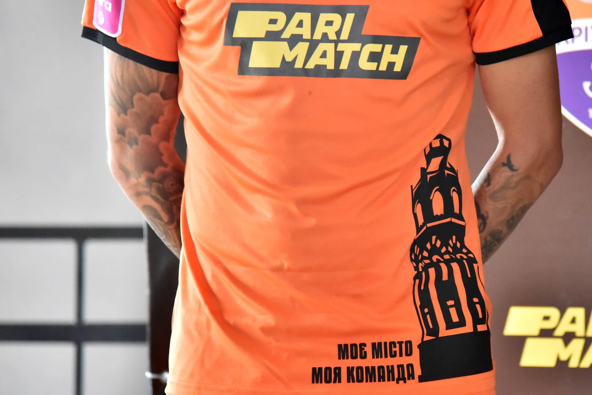Палитра цветов всех комплектов останется традиционной: домашний – синий, а выездной – оранжевый. Особенностью формы является изображение старинной водонапорной башни, которая является одним из исторических символов и архитектурным памятником Мариуполя.