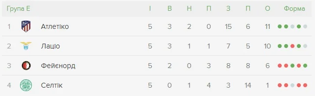 Матчи 6 тура: Атлетико – Лацио, Селтик – Фейеноорд.