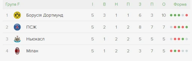 Ничья заставит ПСЖ болеть за Милан, ведь у французов преимущество над "россонери" в личных встречах. Если же ПСЖ не выиграет в Дортмунде, а Ньюкасл обыграет Милан, в 1/8 выйдут англичане. А если Ньюкасл и Милан сыграют вничью, то ПСЖ финиширует вторым даже в случае поражения.