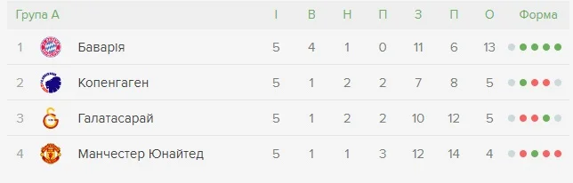 Матчи 6 тура: Копенгаген – Галатасарай, Манчестер Юнайтед – Бавария.