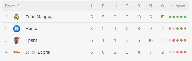 Матчи 6 тура: Наполи – Брага, Унион – Реал.