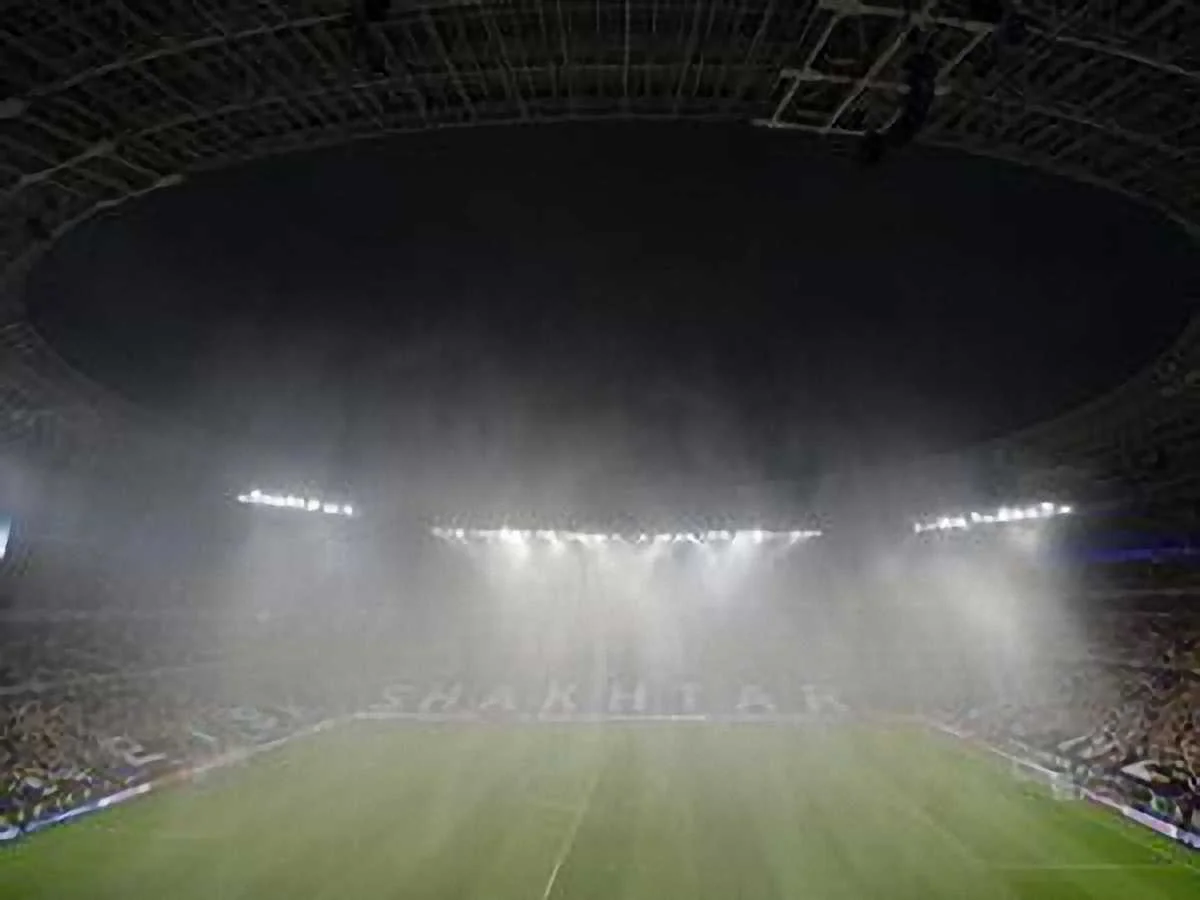 На 5 минуте поединка над "Донбасс Ареной" начался очень сильный дождь. Пока будем ждать решения судей и чиновников УЕФА. Известно лишь одно, что если матч и продолжится, то произойдет это не раньше, чем в 20:00. Сейчас в Донецке стихия несколько угомонилась, однако газон сейчас больше напоминает поле для игры в водное поло, чем в футбол. Надеемся, что дренажная система "Донбасс Арены" сможет выдержать это испытание и противостояние сегодня всё-таки состоится.