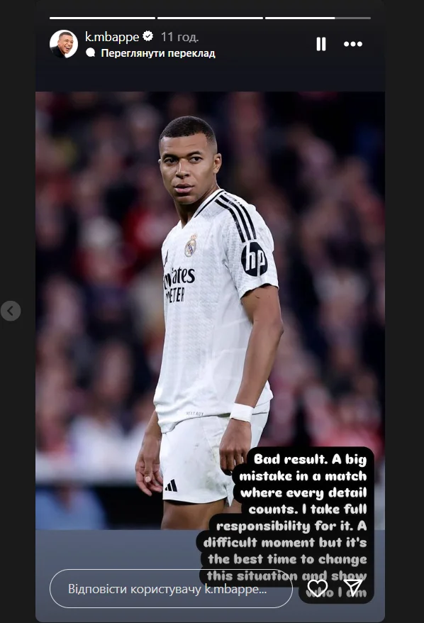 "Плохой результат. Большая ошибка в матче, в котором важна каждая деталь. Я беру на себя полную ответственность за это. Сложный период, но сейчас лучшее время для того, чтобы изменить ситуацию и показать, кто я на самом деле", – написал француз в своих соцсетях.