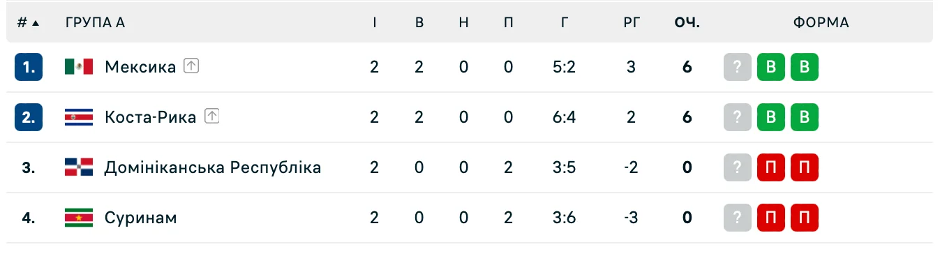 Перед очной встречей Коста-Рика и Мексика имеют по 6 очков. Зато Доминикана и Суринам потеряли шансы на продолжение борьбы.