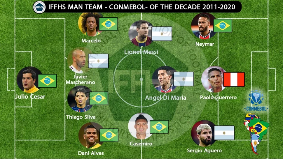 Международная федерация футбольной истории и статистики (IFFHS) выбрала лучших футболистов Южной Америки в период с 2011 по 2020 годы.