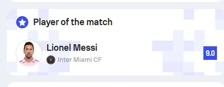 Лучшим игроком матча по версии SofaScore стал именно легендарный аргентинец, который получил оценку 9,0.