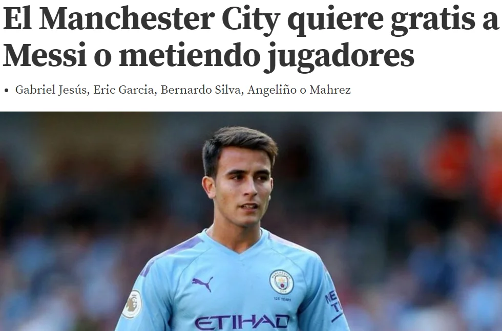 Манчестер Сити осознает, что Барселона может не отпустить Месси бесплатно, но не готов платить несколько сотен миллионов. Вице-чемпион Англии планирует включить в сделку нескольких игроков – Эрика Гарсию (испанец как раз интересует Барсу), Габриэла Жезуса, Бернарду Силву, Анхелиньо и Рияда Мареза.