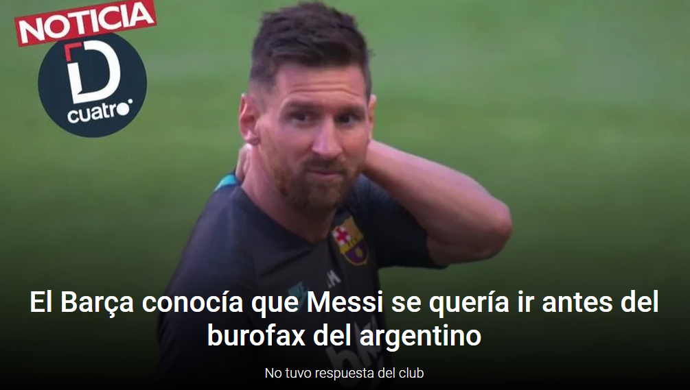 Издание AS, ссылаясь на источники из ближайшего окружения Месси, пишет, что аргентинец намерен воевать с каталонским клубом за бесплатный трансфер. Он хочет уйти свободным агентом после требования Бартомеу выступить публично.