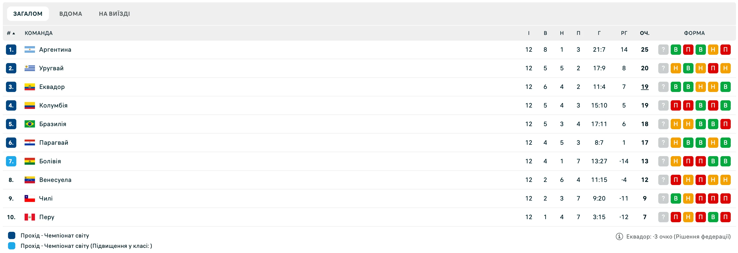 Колумбия дома неожиданно уступила Эквадору, хотя играла большую часть матча в численном большинстве. Единственный мяч, забитый гостями еще до удаления, оказался решающим в этой напряженной встрече. А вот Аргентина минимально обыграла Перу. Победный гол был забит на 55-й минуте: Месси записал в свой актив ассист, помог партнерам обеспечить три очка.