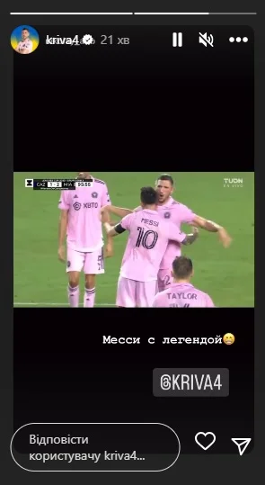 Защитник сборной Украины Сергей Кривцов обратился к Лионелю Месси после первого забитого мяча аргентинца в составе Интер Майами.