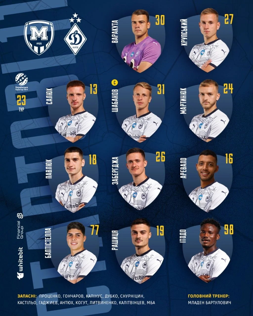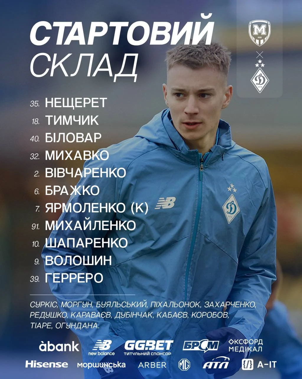 Динамо: Нещерет, Тымчик, Биловар, Михавко, Вивчаренко, Бражко, Ярмоленко, Михайленко, Шапаренко, Волошин, Герреро.
