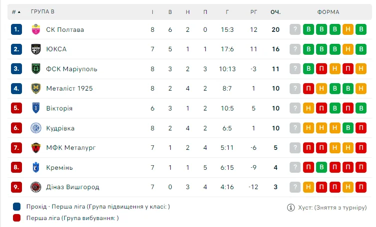 Победа позволила Полтаве закрепиться на вершине турнирной таблицы группы Б (20), зато Металлист 1925 с 10-ю баллами остался третьим.