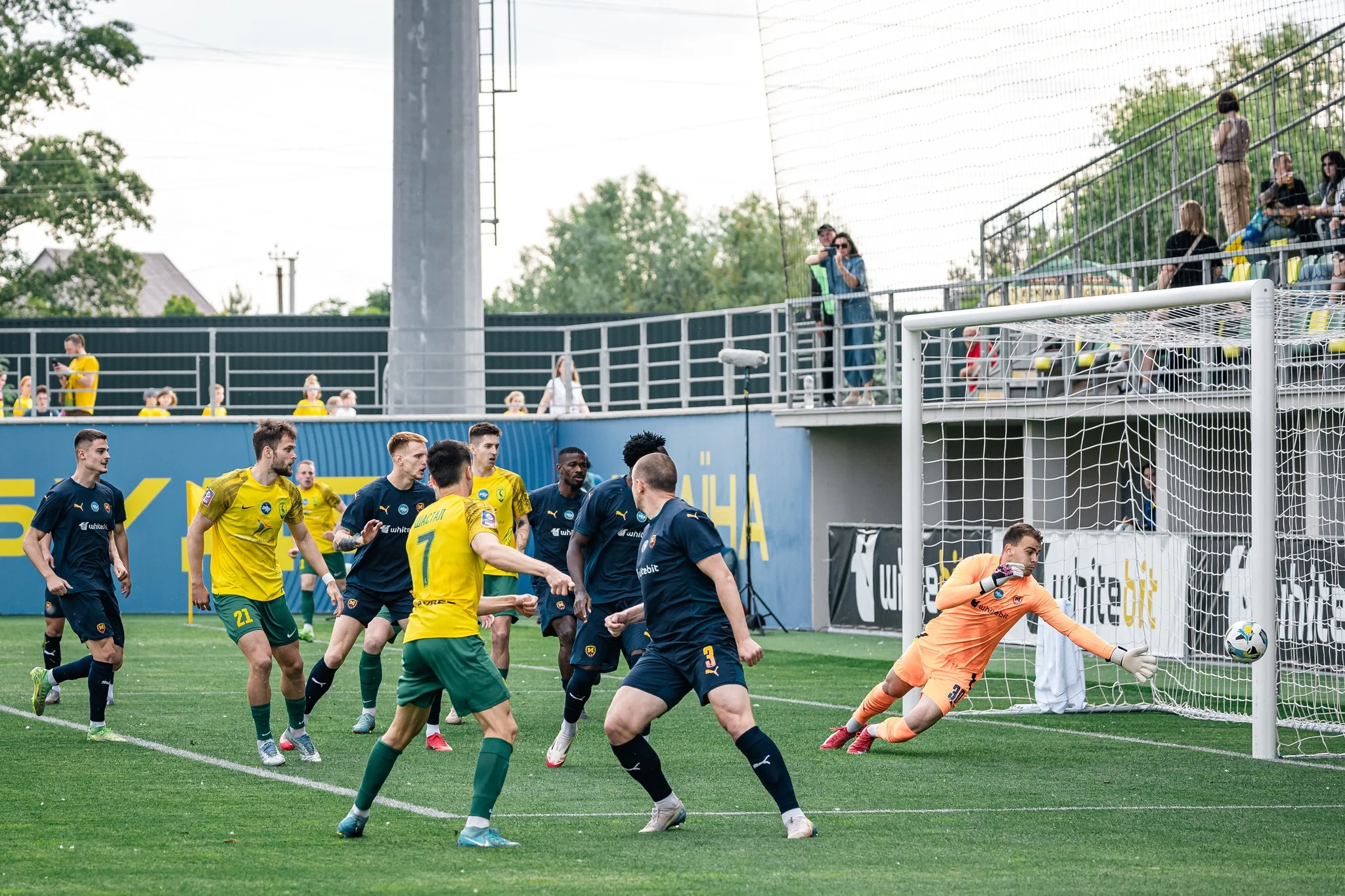 Харьковчане сразу же провели ответную атаку, завершив ее переводом на дальнюю. Оттуда в полном одиночестве пробивал Рашица – теперь уже Механив выполнил героический сейв. На 76-й минуте Максим потянул еще и удар Калитвинцева со стандарта с острого угла, а на 79-й киевлян спасла стойка! В нее попал свежий Бугай, замыкая прострел Калитвинцева.