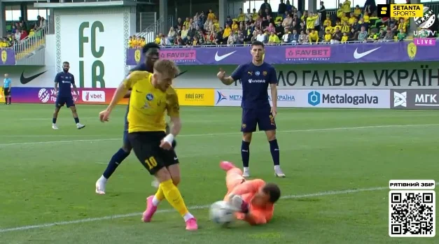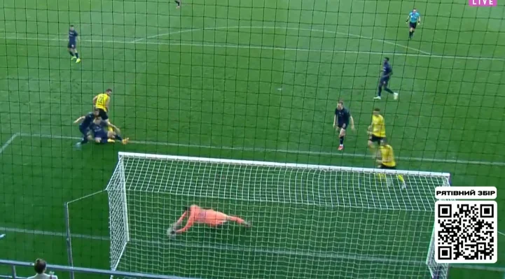 Еще через семь минут Салюк перехватил прострел Соколова, но потерял мяч под давлением Диегу и Шастала – Дмитрий в итоге дал пас на Ризныка, но форвард не смог переиграть Варакуту в ближнем бою. Дальнейшее добивание прошло во внешнюю сторону сетки, но лайнсмен все равно заметил офсайд.