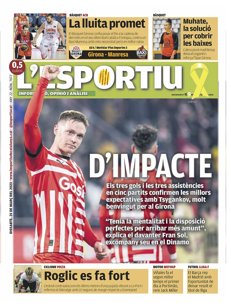 Виктор Цыганков оказался на первой полосе популярного каталонского издания L'esportiu, которое пригласило в качестве эксперта экс-форварда киевского Динамо Франа Соля. Последний защищает цвета Малаги.
