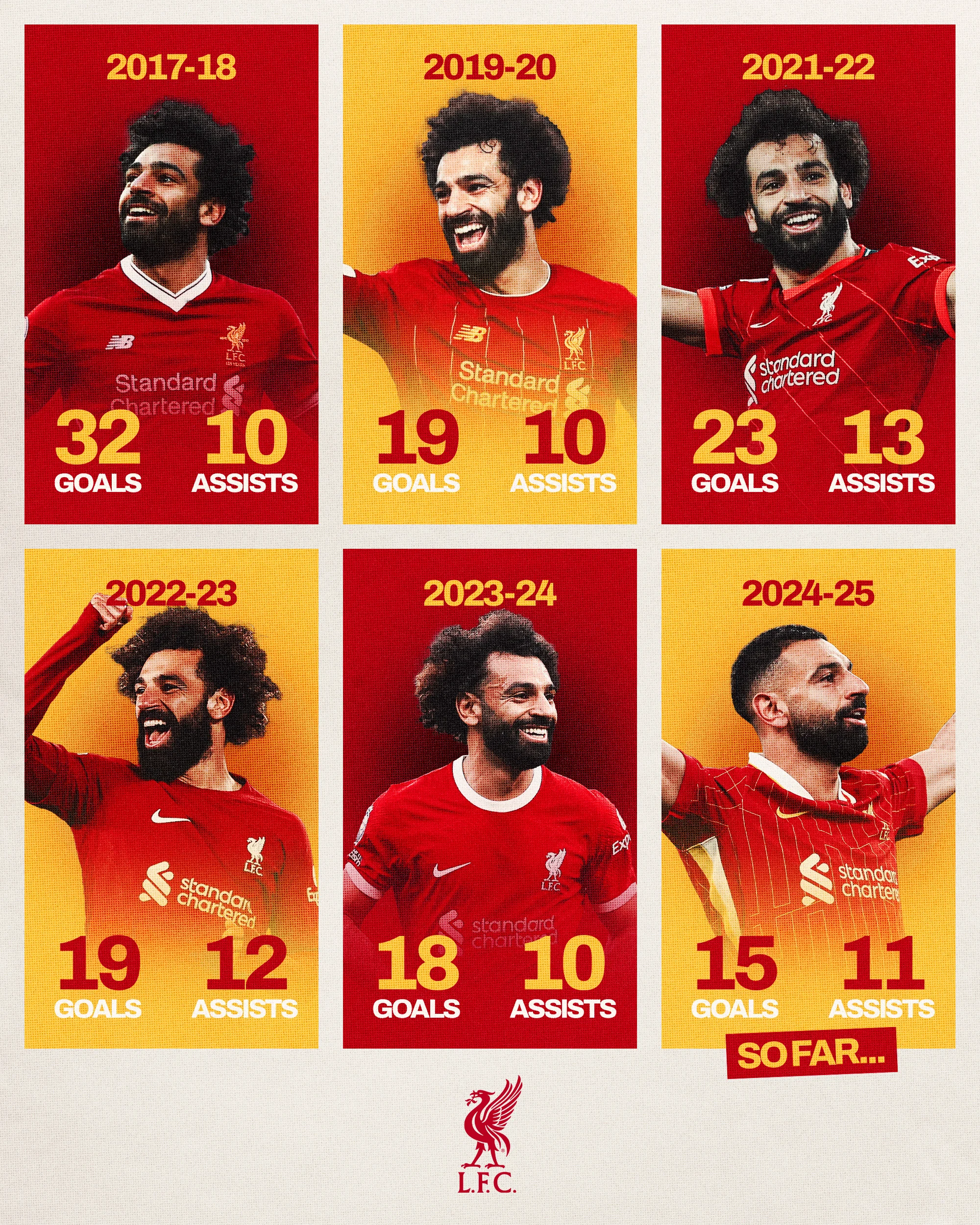 Салах же в предыдущем туре стал первым футболистом в истории, которому удалось набить минимум 10 голов и 10 ассистов в четырех сезонах АПЛ подряд. И первым футболистом, которому удалось это сделать в шести сезонах АПЛ. И первым, кому удалось сделать это в одном сезоне еще до Рождества...