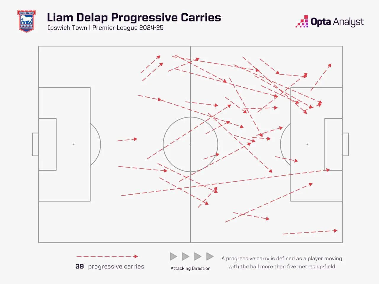 Недооценивать новичка не следует. Хотя бы из-за дриблинга и скорости Лиама Дилепа. Сын легендарного Рори Дилепа не стал грозой аутов, но лидирует в АПЛ по средней дистанции прохода с мячом (14, 7 м). Два гола Дилепа – Фулхэм и Астон Вилли – в тройке по протяженности прохода с мячом в ногах (30, 1 м и 33, 2 м).