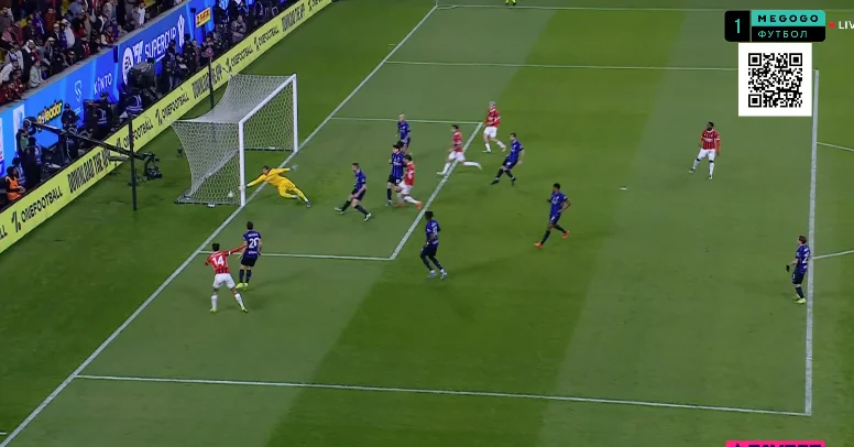 Значительно острее стала ситуация на 72-й, когда Карлос Аугусто с нескольких метров замыкал навес на дальнюю штангу. Рикошетом от защитника мяч попал в стойку, а Меньян выбил его с линии ворот!