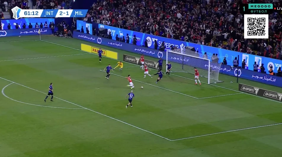 Не успели игроки разбегаться после перерыва, как Интер забил второй раз! И снова героем стал Тареми, который на 47-й минуте избежал офсайда и получил разрезную передачу на ход от Де Врея. Иранский нападающий не стал сближаться с Меньяном, бахнув в правый нижний – 2:0!