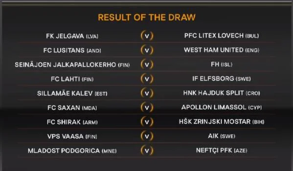 Благодаря путевке, полученной за фэйр-плей, английский "Вест Хэм" тоже стартует с раннего отборочного этапа. Лондонцы сыграют с андорской "Лузитаной".