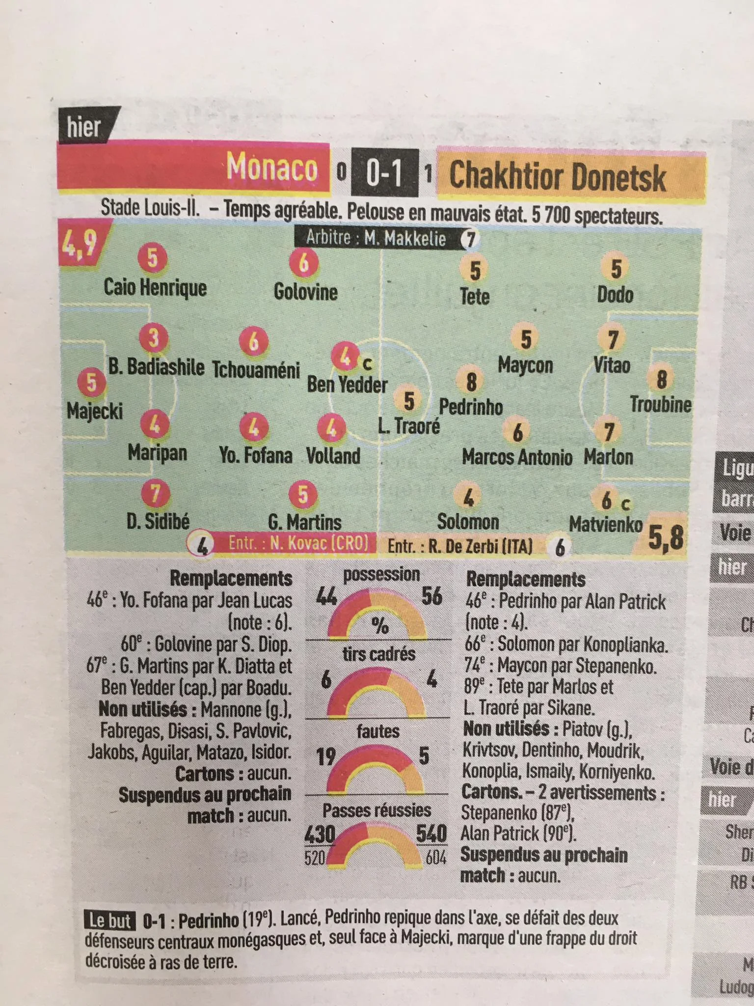 Культовое издание L'Équipe выставило оценки игроков по мотивам матча плей-офф квалификации Лиги чемпионов между Монако и Шахтером (0:1).
