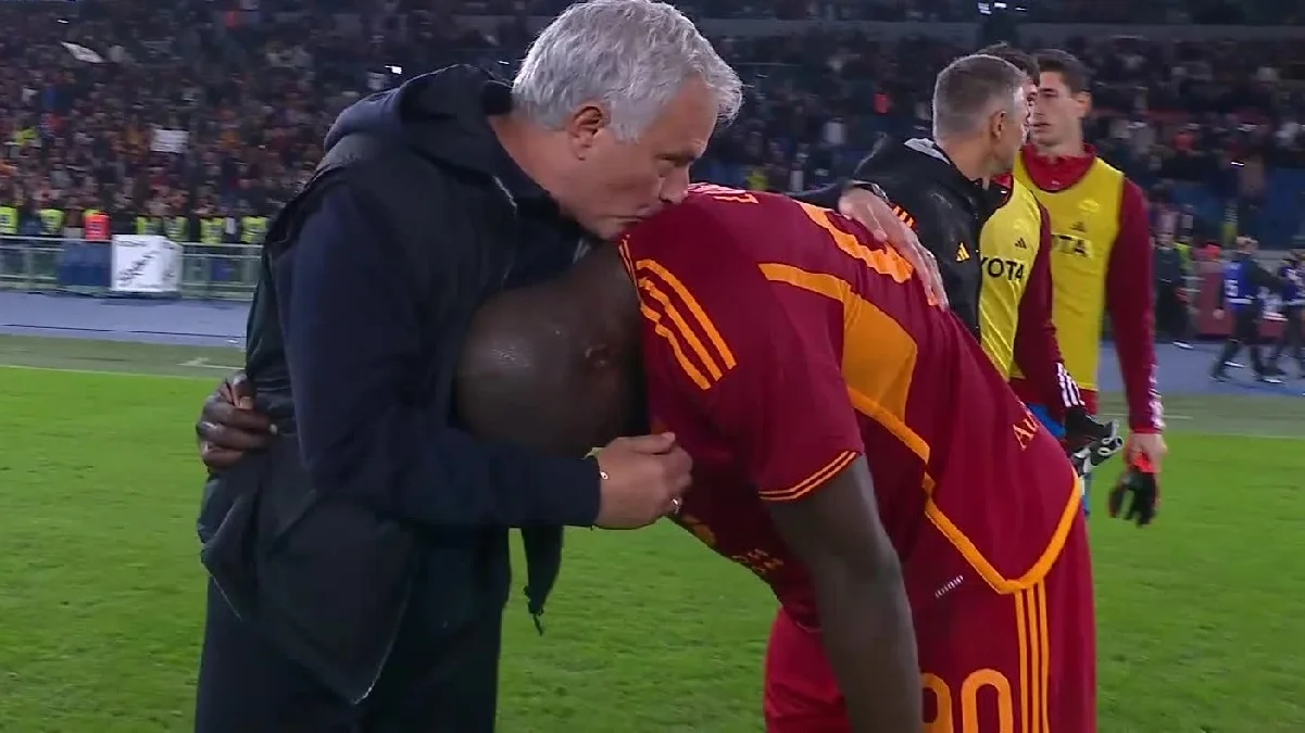 Моуринью благодарит Лукаку за победу / Стоп-кадр из трансляции