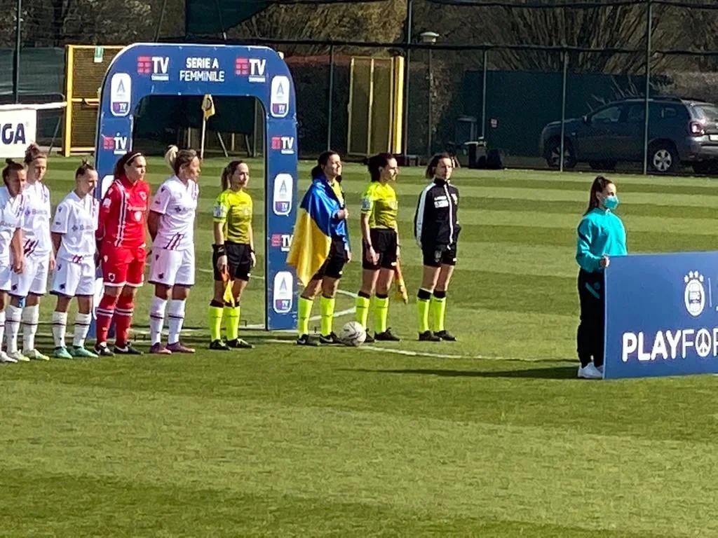 Украинская арбитр обвернулась родным флагом, выходя работать на матч женской Серии А между Интером и Сампдорией, сообщает пресс-служба УАФ.