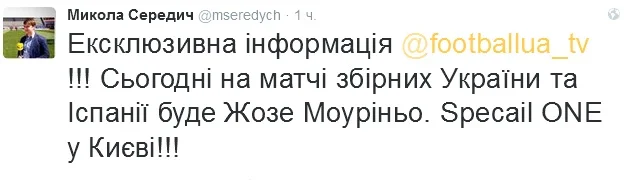 Моуринью посетит матч Украина - Испания