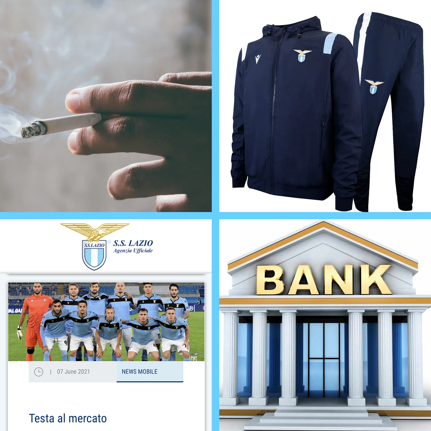Как известно, SMM Ромы один из самых креативных в Европе. Поэтому Лацио не мог представить Сарри банально. Правда, оригинальности тоже не хватило. Уж слишком подход "орлов" напоминал акцию Ювентуса, когда тот возвращал Массимилиано Аллегри. Чтобы замести следы, "бьянчелести" обнародовали все фото в одном коллаже, тогда как туринцы подогревали интерес, публикуя новый ребус каждый час. Если вдруг забыли, то сигареты оказались на фото, потому что Сарри якобы выкуривает по 5 пачек в день; спортивный костюм из-за того, что Маурицио принципиально носит только их; иллюстрация банка, потому что в этом учреждении специалист работал, пока не стал тренером.