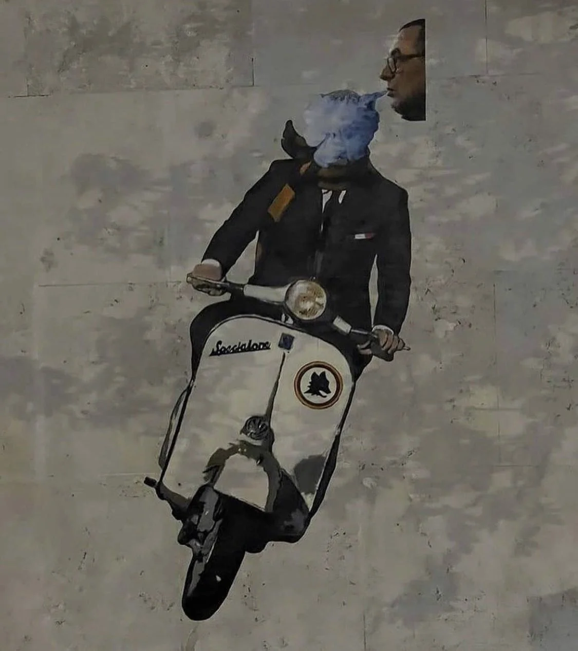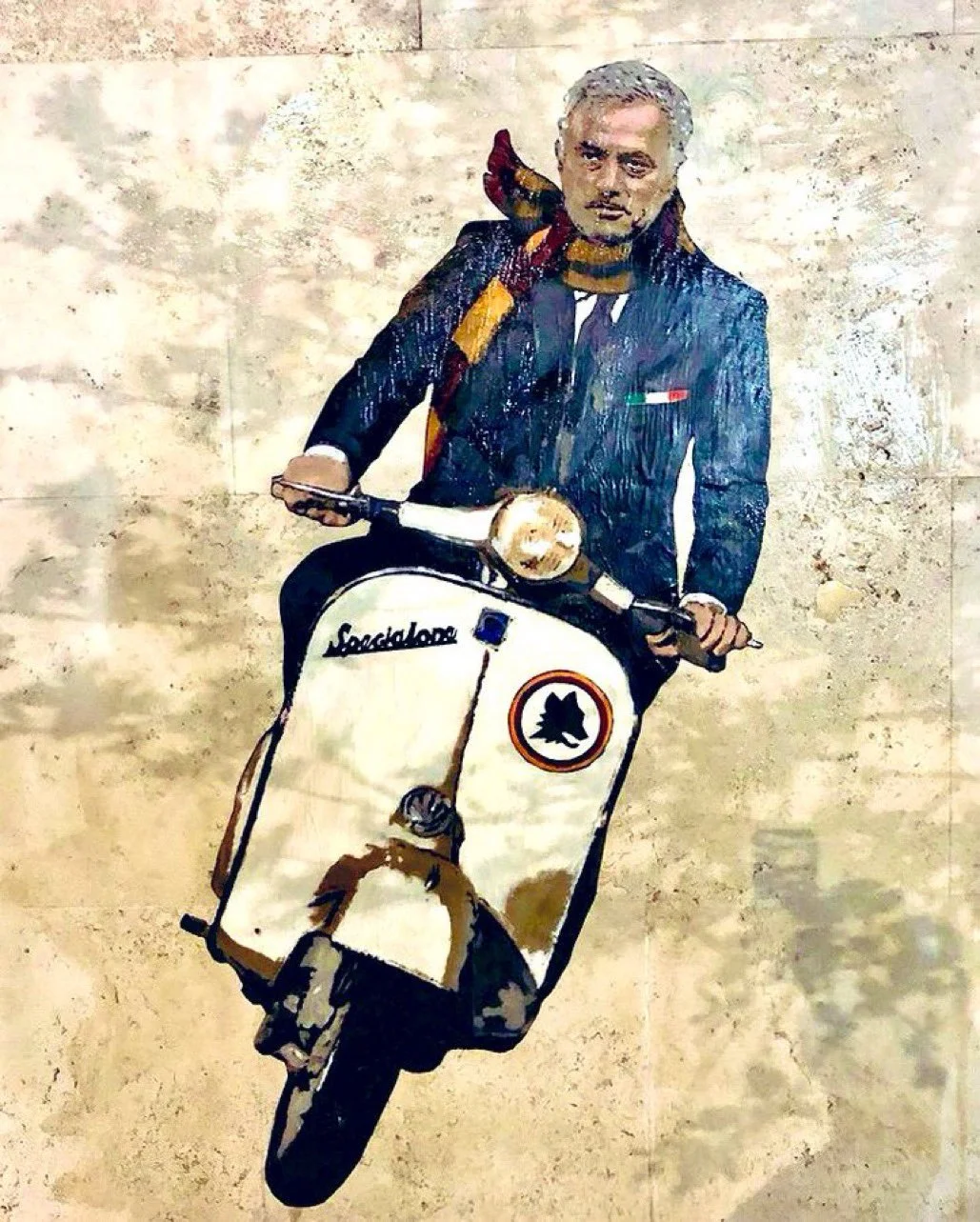 Но прямо сейчас большинству болельщиков Ромы все равно. Их команду возглавил сам Жозе Моуринью. Великий и ужасный! Он еще ничего не достиг с "волками", но уже стал кумиром. На улицах Рима даже появился мурал. Граффити появилось в районе Тестаччо. Его нарисовал уличный художник Гарри Гриб, который "посадил" Моуринью за руль культового мотороллера Vespa. Любители классического кино легко узнают мотивы постера к фильму "Римские каникулы".