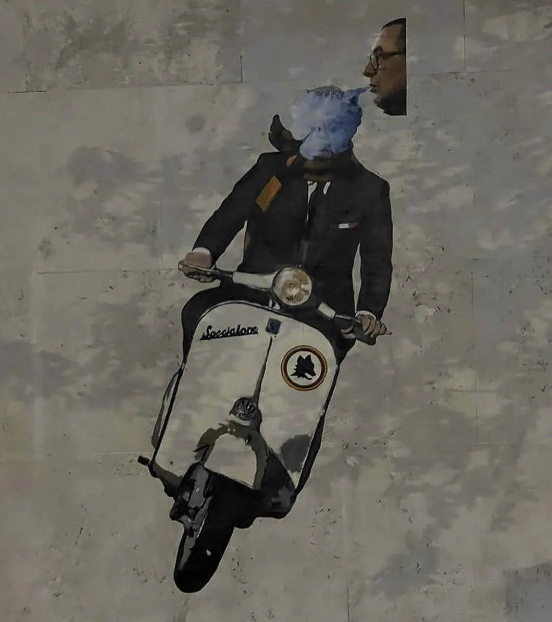 Как тут не вспомнить проделку фанов "орлов" вскоре после назначения тренеров. Моуринью прибыл в Рим ярко, даже эпатажно. На стене одной из улиц оперативно появился мурал, где он управлял Веспой (модель скутера, очень популярная в Италии – прим.). Очень быстро лациале его "дорисовали". В углу появился Сарри, хатмивший Моуринью клубком дыма своих любимых сигарет. Тогда никто и представить не мог, что это "пророчество" имеет шансы сбыться.