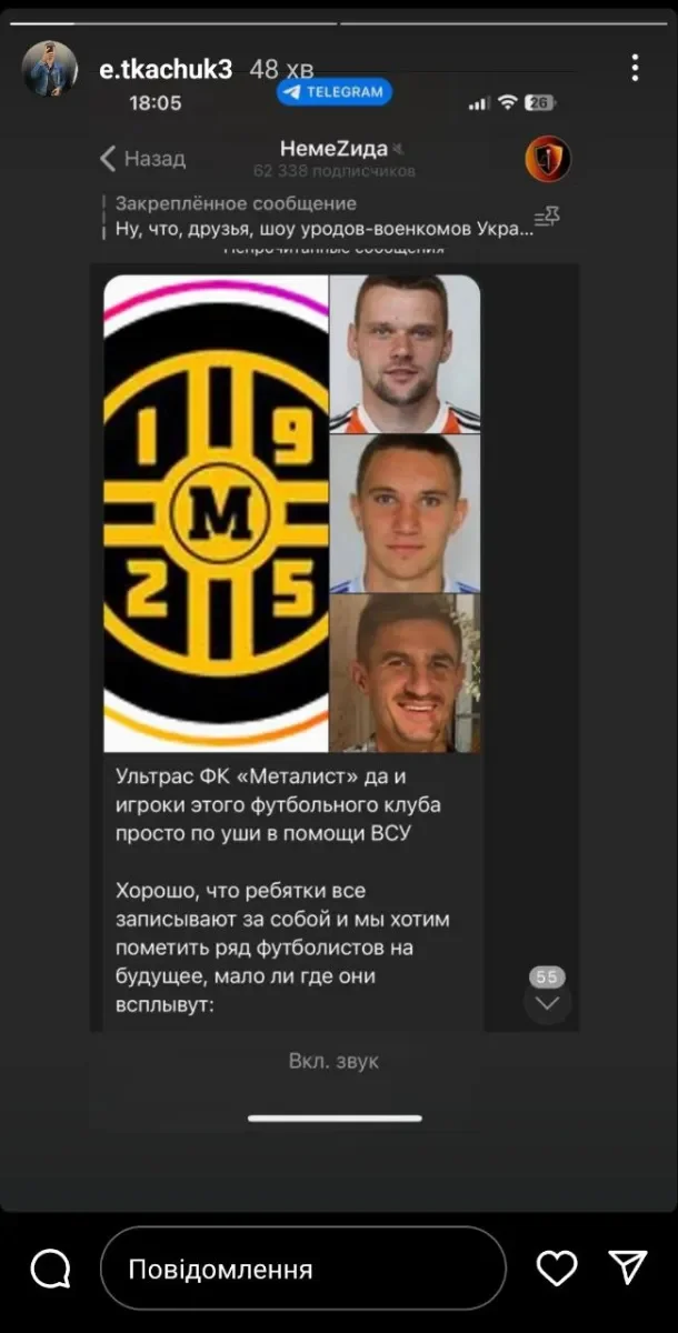 В телеграмме россияне называют Сидоренко, Ткачука и Зубкова "помощниками нацистского режима" и "регулярными донатерами украинского вермахта". Евгений отреагировал на такое внимание, написав в своих соцсетях: "ну хоть чем-то теперь можно гордиться".