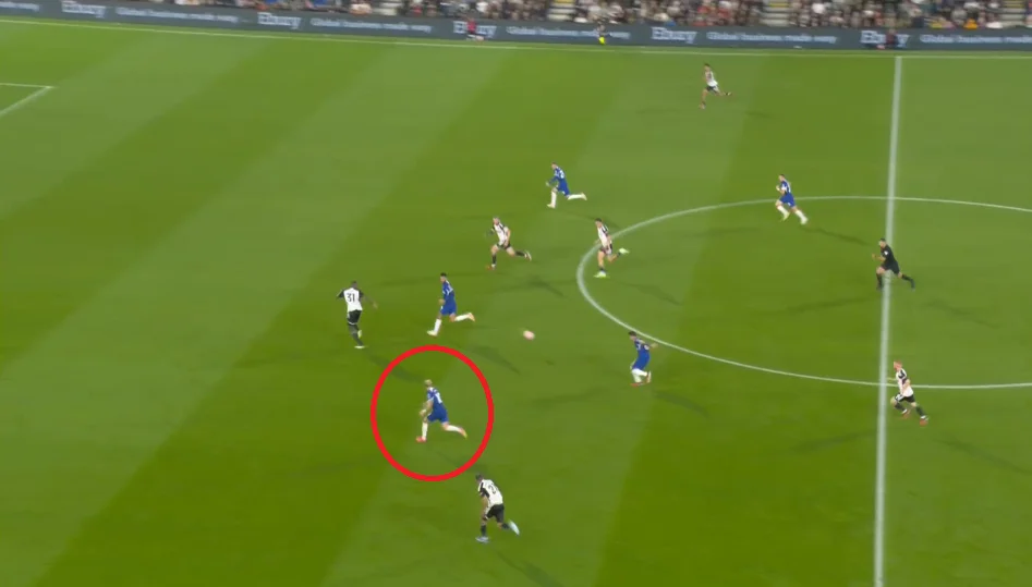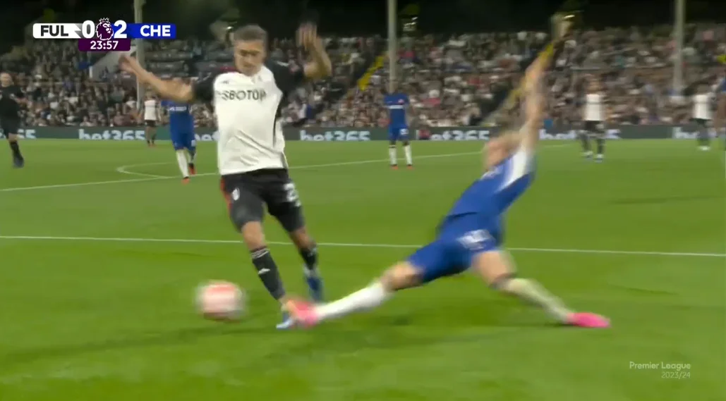 Энцо Фернандес решил запустить передачу на ход Палмеру, однако тот зажевал эпизод. Все завершилось выстрелом аргентинца из-за пределов штрафной по воробьям.