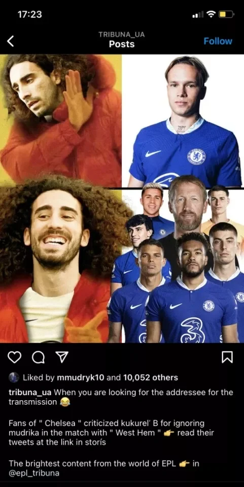 Фанаты сразу же "взорвались" мемами, которые разлетелись по соцсетям. На одном из них Кукурелья отдает передачи всем кому угодно, но не Мудрику. Забавно, что на этот пост отреагировал сам Михаил, оценив его "лайком". Впоследствии украинец убрал свой "лайк", но, как известно, "скрины не горят". Европейские издания (AS, The Sun и др.) успели зафиксировать "лайк" еще до того, как он был удален.