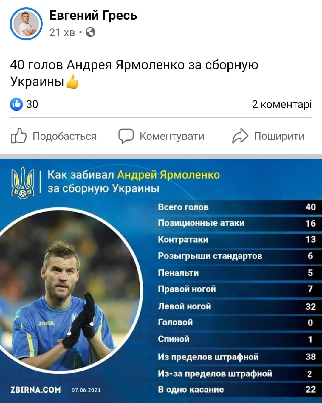 Известный футбольный аналитик и помощник Руслана Ротаня в молодежке – Евгений Гресь – разобрал на молекулы все 40 мячей Ярмоленко за сборную.