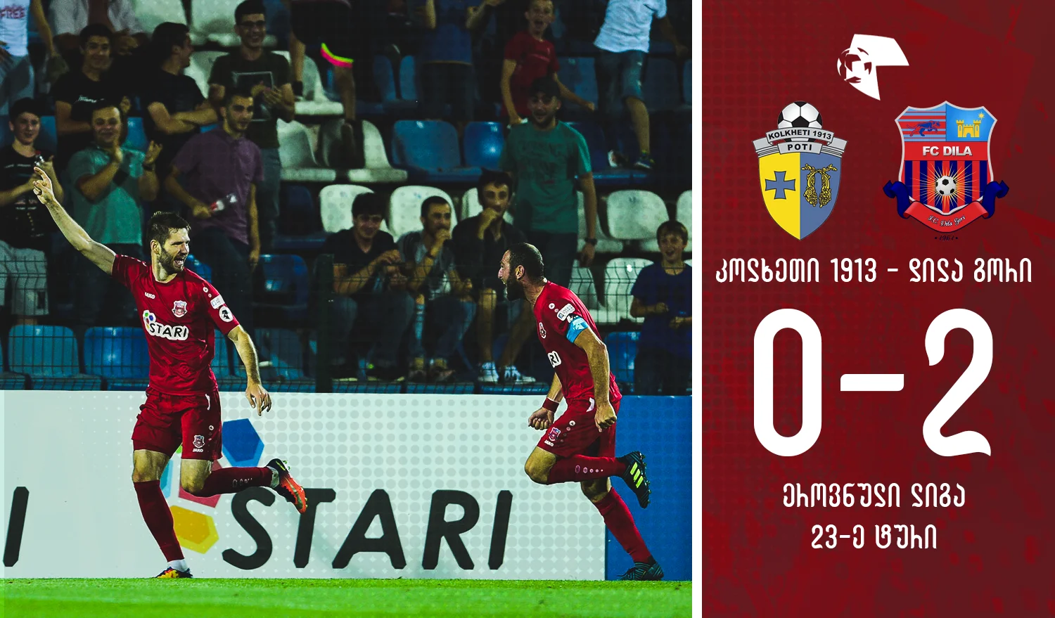 Діла на виїзді перемогла Колхеті (2:0), а у складі гостей відзначився уродженець Самбора, що на Львівщині, Микола Ковталюк.