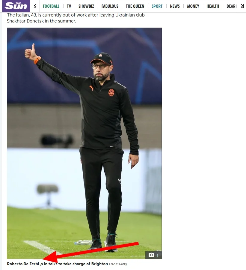 В частности, издание The Sun даже не смогло идентифицировать бывшего наставника Шахтера. Вместо фото Де Дзерби в новости разместили изображение Игора Йовичевича. Более того, их там даже два. В то же время в тексте о действующем тренере "горняков" нет ни слова.