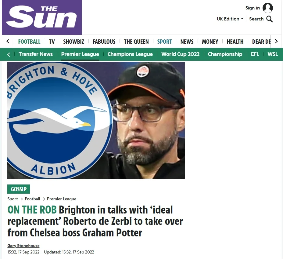 Британская пресса активно пишет о переговорах Брайтона с итальянским специалистом, который должен заменить Грэма Поттера. Де Дзерби даже называют идеальным кандидатом, но, очевидно, очень плохо его знают.