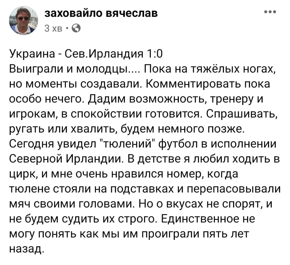 Агент, менеджер и эксперт Вячеслав Заховайло сравнивает игру Северной Ирландии с цирком тюленей.