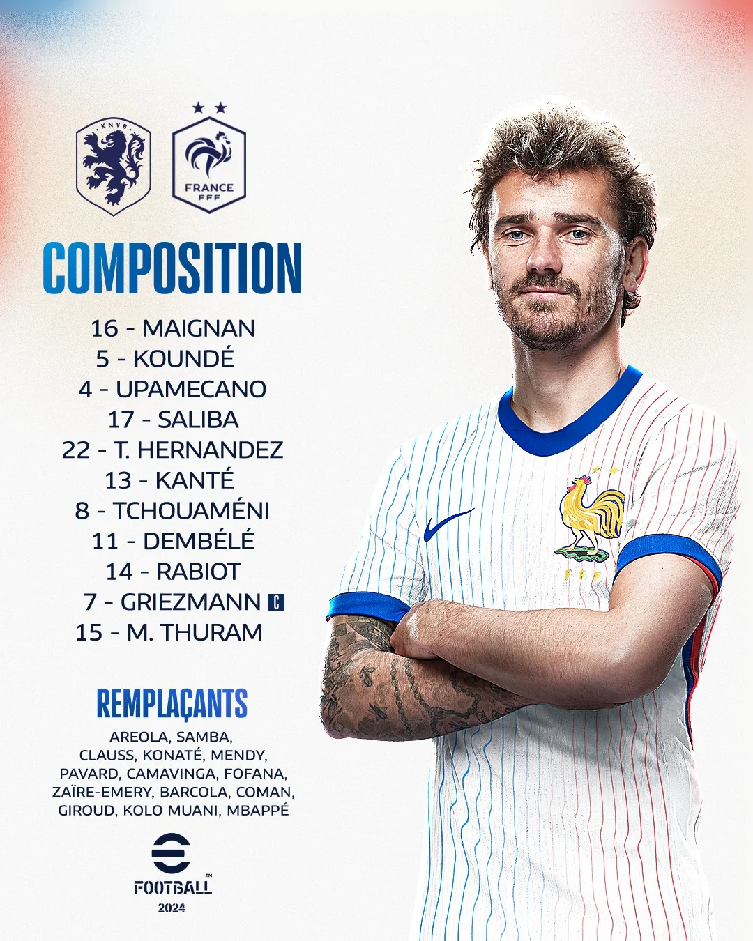 По именам явно один из топовых матчей группового этапа Евро-2024. В первом туре гранды одержали неубедительные победы. Нидерланды едва дожали Польшу (2:1), а Франция лишь благодаря автоголу одолела Австрию (1:0). В той игре Килиану Мбаппе сломали нос. Дидье Дешам не исключал скорого выздоровления суперзвезды, но против Нидерландов он начинает в запасе.