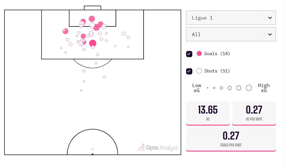 Одна з його головних чеснот – знаходити правильне місце у штрафному майданчику, щоб завдати удару. Звичайно, ще потрібно вдало виконати передачу на Девіда, але саме його позиціювання надає можливості для створення моментів. Він чергує різні типи відкривання: за спини у вільний простір, під простріли на ближню стійку, під скидання після навісу на дальню, під пас у другий темп. У Лізі 1 він забив 14 голів при xG 13,65. Отже, канадець забиває майже все, що створює. Непогано грає на другому поверсі і точний з 11-метрової позначки.